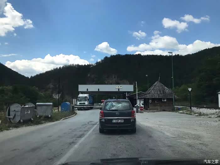 观摩完河中小屋,我们就一路向波黑驶去了。大约1个多小时以后就到了 塞尔维亚和波黑的边境,在 塞尔维亚 一方,会收取每辆车150蒂纳尔,约7块人民币。然后在类似收费站的窗口出境,敲章。 波黑对中国 免签,入境非常顺利。