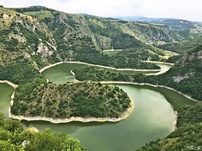 到达山顶观景台,俯视峡谷全景,真的是好美。乌瓦茨峡谷是塞尔维亚最让人印象深刻的风景,位于南部山区腹地,属于喀斯特地貌,千万年的流水冲刷以及大自然的神奇力量造就了乌瓦茨令人叹为观止的连续15个180度巨大河湾,在欧洲乃至世界都是罕见的。要是秋季到这里,山上的植被变黄,拍下来的照片就更好看了。冬季是上不来的,所以冬季出发的小伙伴们只有放弃了。