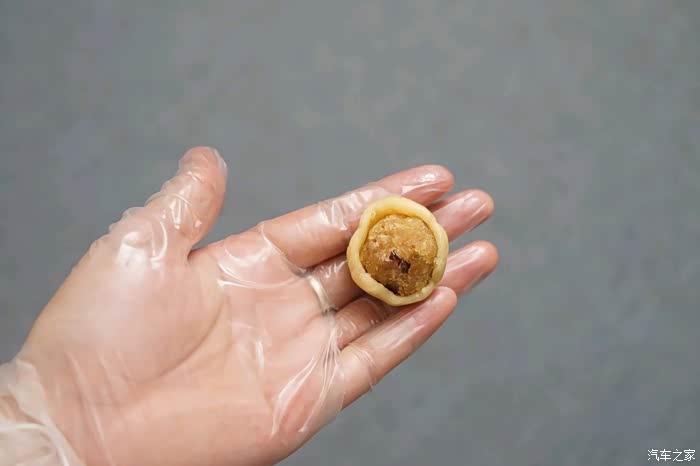 直至完全包好,滚圆,如果你的磨具会粘,可以适当滚点玉米淀粉。