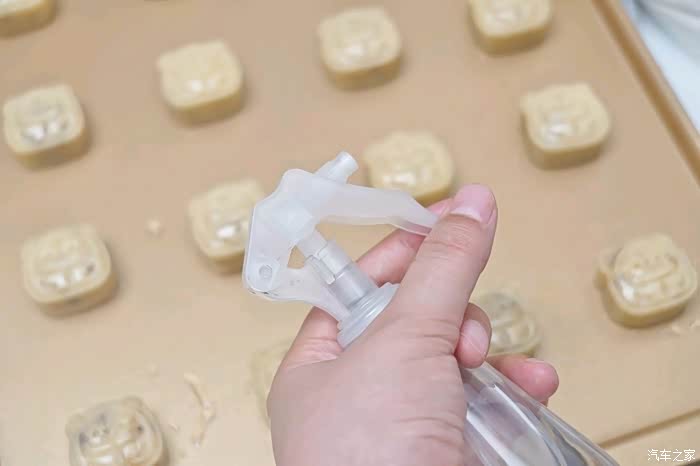 按压在盘子上,注意间隔,按压模具小技巧,固定好底盘,再压花纹,要压紧,但只压一下,反复压的话花纹就乱七八糟了,实在没有压好,别害怕,可以团一团塞进去,重新压~回炉重造。