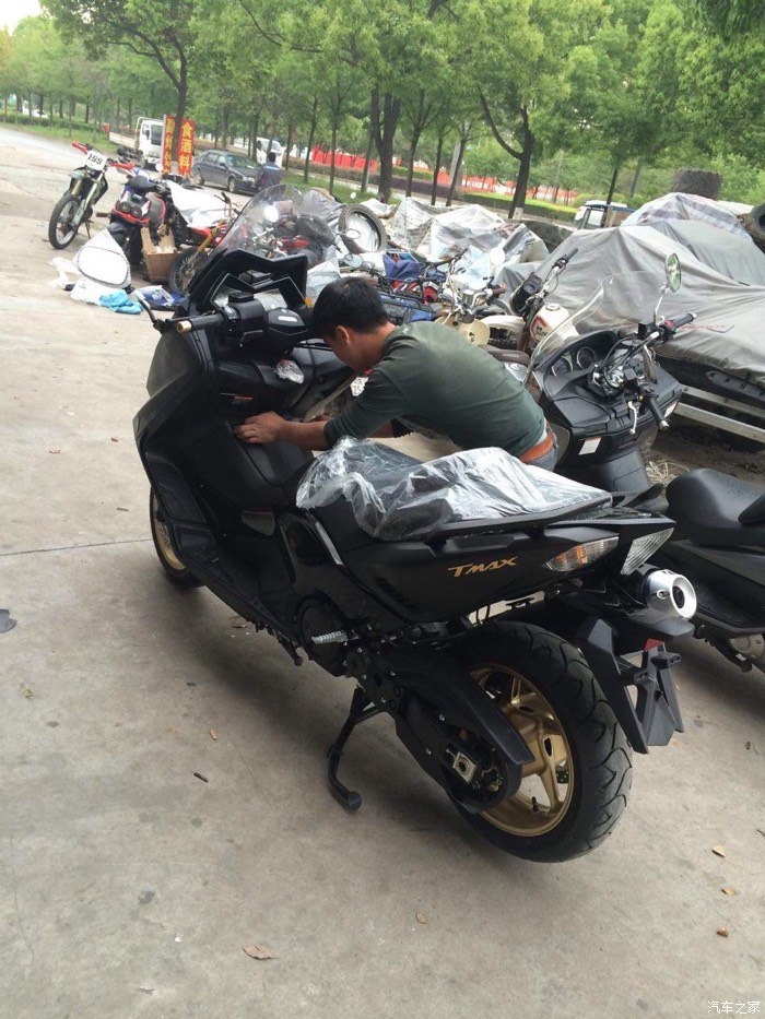 后来经过几晚的思想斗争,youku,baidu,moto8,汽车之家等等的学习对比之后还是脑子一热决定买tmax了。去我这唯一一家水车店下了订单,本来受想买15款白色普通版的,可是要定一个月。这怎么可以,老子失眠那么多天恨不得马上就提到才是。后来几番电话沟通,有一辆14款黑金版的,还便宜1w。不想了,坚定的对电话那头的他说到:现在马上立刻,发过来!