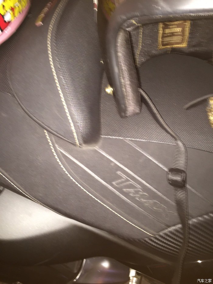 黑金版的这个坐垫质感着实不错好了,现在说说驾驶感受。简单的说这是一辆你买了决定不会后悔的车。声浪:前期选车期间看遍了优酷的所以tmax视频,到车了以后发现,优酷上tmax的排气声浪完全体现不了现实tmax的那股味道,怠速时的声音更接近4缸发动机,只有在起步油门的那一霎那出卖了他双缸的真实表现,不过声音非常整,没有散的感觉,高速以后排气声浪忽略不计了。