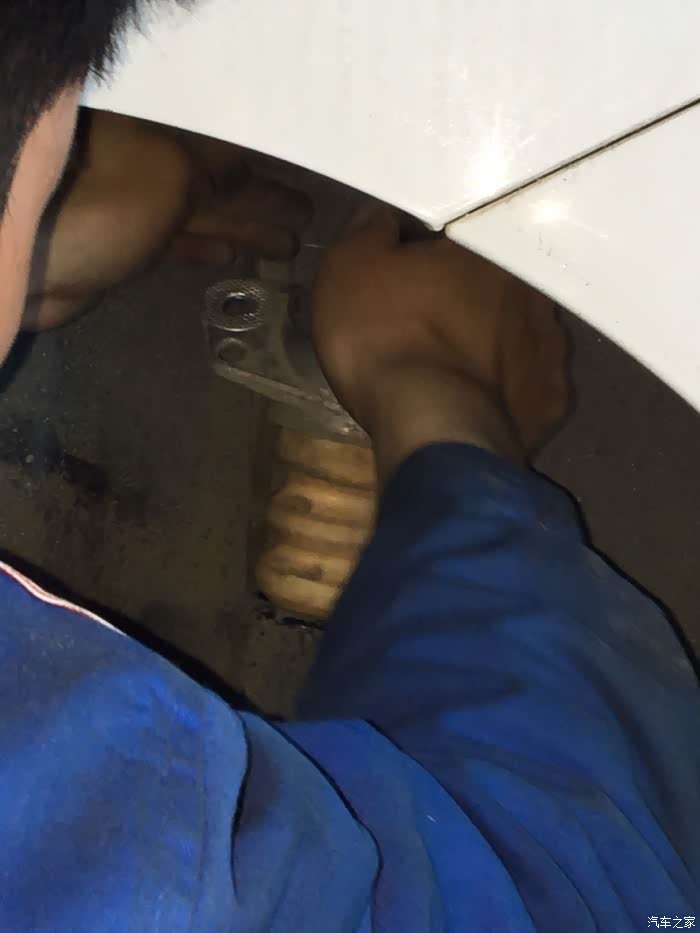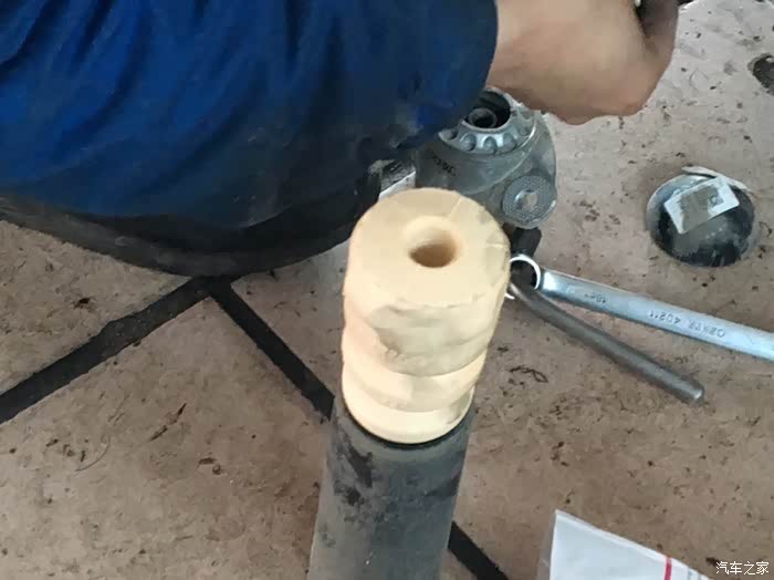 开始拆上胶固定套,我看过论坛有些车友还是把整个减震筒拆下来更换,其实就是拆除上面就可以了。