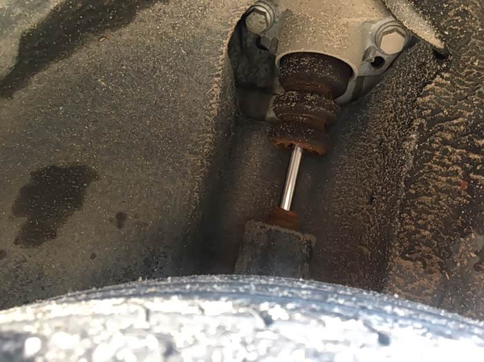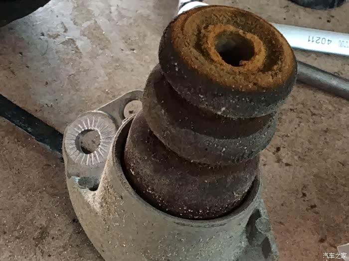 经历过风吹雨淋的四年,减震器缓冲胶已经腐烂断了,失去了原有的作用,如果不把它更换了,过不了多久就会使减震器漏油,甚至于报废。