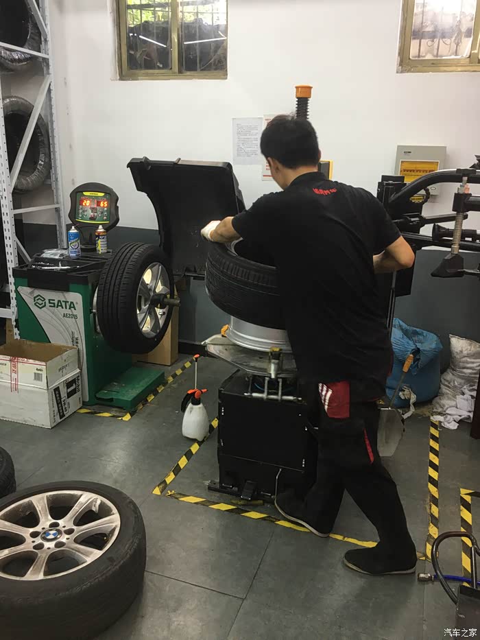 看到轮胎,激动,赶紧开装吧。结果店长说我没预约,要等。所以提醒各位,去途虎工厂店一定要提前预约服务。