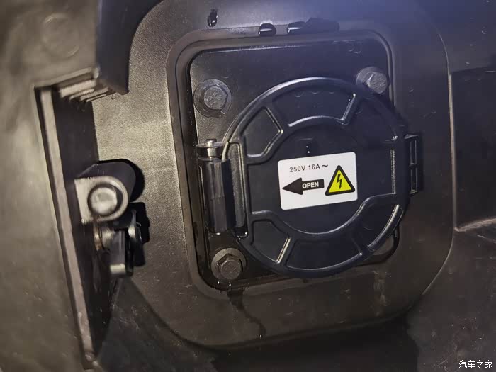 墙上专门拉出的两个带防水外盖的插座。一个10A,一个16A规格。充电时只能单个用,不能同时充。