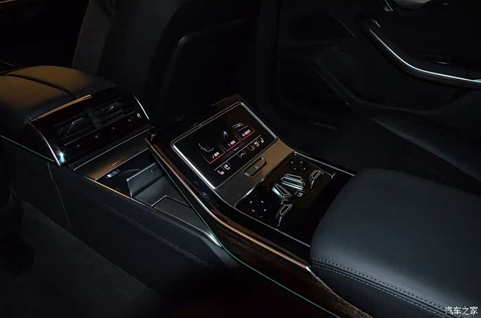 如果说奥迪A8L的外观是给人视觉上的冲击的话,那么其内饰绝对是感官上的享受。很显然,奥迪A8L的内饰设计绝对是少帅企业家最喜欢的风格,中控台双触摸屏设计以及贯穿整个仪表台和饰板的氛围灯,时刻不在宣示着自身的与众不同。坐在后排空间,中央扶手箱几乎集成了后排所有的舒适配置,触手可及,加上宽大的腿部空间及可变的氛围灯,甚至比飞机的头等舱更为浮夸。