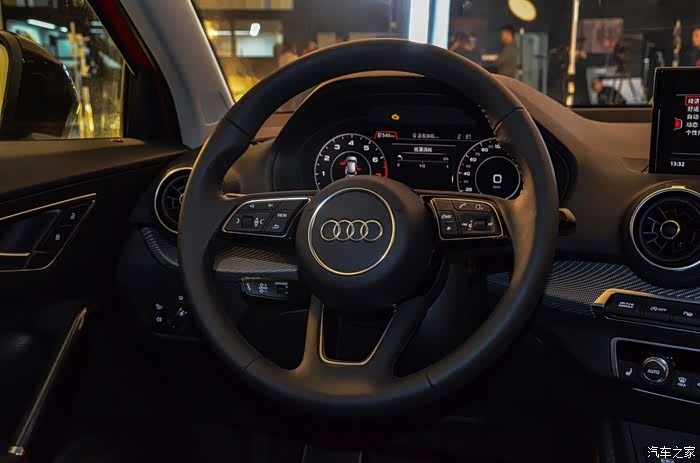 奥迪Q2L的内饰和奥迪A3的相似率很高,一切设计由简置深,细节用料依旧十分上乘,在一些细节上,例如饰板的纹路及变速箱两侧挡板纹路稍显不同。在顶配车型Q2L配备有奥迪最新的液晶仪表系统,而其他配置想要拥有此配置需要6200元选装。