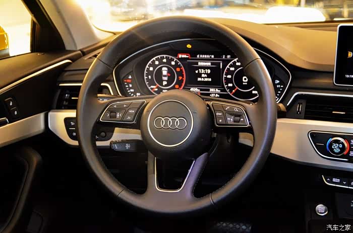 图:内饰设计上奥迪A4L则更为运动也更凸显其年轻定位,全新的MMi人机交互系统,带液晶屏幕的空调系统以及在高配车型中应用的液晶仪表及平底运动方向盘都成为了这部车内饰配置中最大的闪光点。
