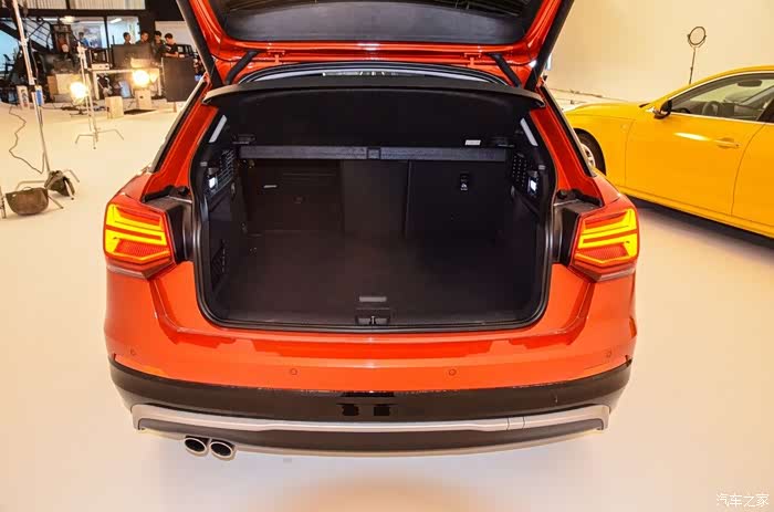 图:奥迪Q2L采用可分体放倒的后座,为后备箱储物提供多重可能,而且我们的测试车还配备有电动后备箱尾门。