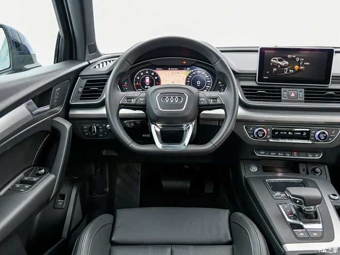 图:奥迪Q5L的内饰采用了当下奥迪家族式的风格,中控台多使用软质材料包裹,全新的MMi系统与液晶仪表更成为了全车内饰的焦点。