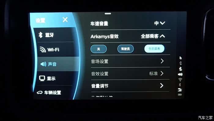 在一个音响效果,很多人试车的时候肯定是来不及看这些设置的,所以原车默认Arkamys音效是关闭的,关闭的怎么能试出来效果