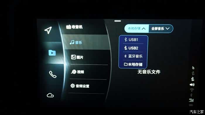 多媒体包括收音机,蓝牙,U盘,网络音乐,本地储存。U盘可以同时装两个,可以选择U盘里的文件夹