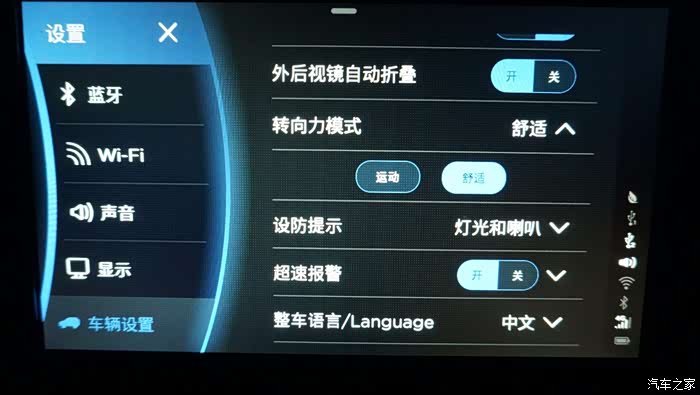 最重要的部分来了,虎8对车上的大部分辅助设备都做到了可选择,可设置,比如以下图片的自动落锁,大灯延迟(其实就是伴你回家功能),日间行车灯,转向360全景辅助,车辆辅助线,车道偏离,后视镜折叠,风扇提前开启和延时关闭这些功能的开关,还有,锁车提示方式可选择,转向助力可选择,后尾门开启程度可选择。
