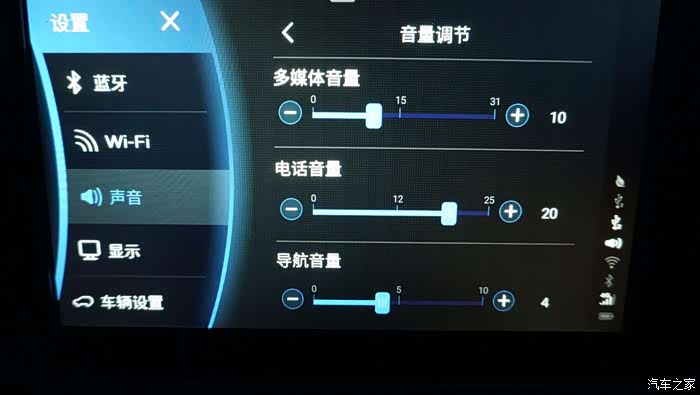 更牛的是,音量调节,虎8有四个音量调节,四个啊,包括对话音量,电话通话音量,导航音量,还有多媒体音量,所以你再也不用担心,听音乐的时候听不到导航声音了,反正这个太人性化,大家自己到时候按照自己喜好去调吧。
