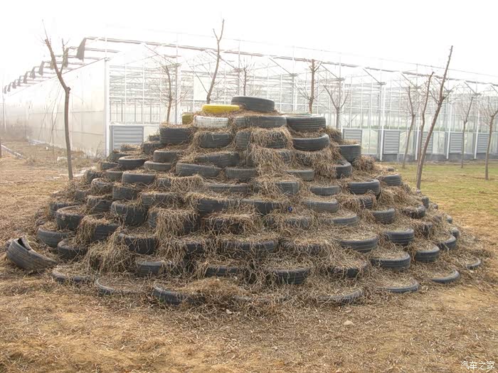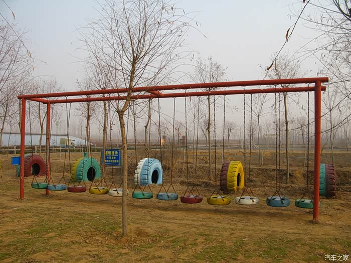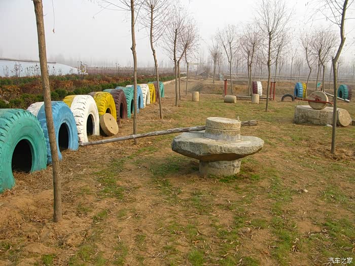 这一堆的轮胎组成了像个小山一样,可以比一比看谁能先登顶。