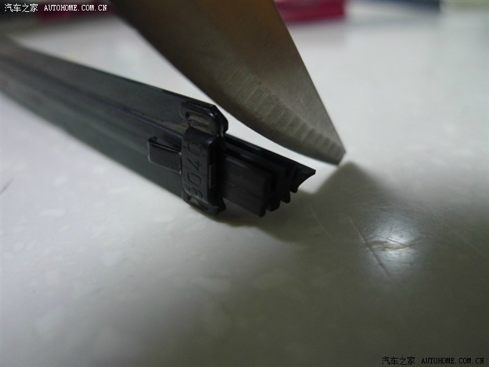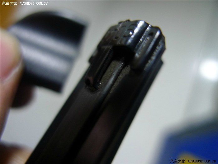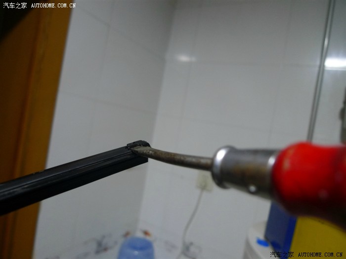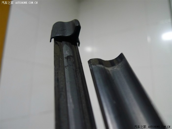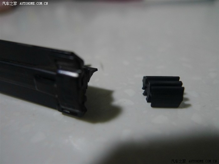 ↑雨刷的两端有堵头,有一端的胶条是活动的可以拉伸,另一端就是固定的,现在就是要找固定的那端动手