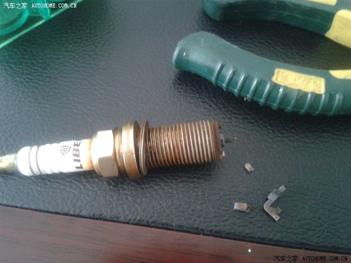 经过检验,中心电极虽然细小,强度足够,刚度不足。就是弄断很难,弄弯稍微简单。头子已经碳化,没有了硬度,很脆;用老虎钳和尖嘴钳测试了头子和塞子本体焊接强度,那叫一个强!怀疑个头子的碳化也有关系。