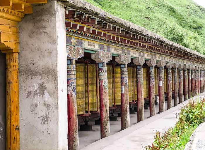绕寺一周金色的“转经轮”看上去是那么的神圣。