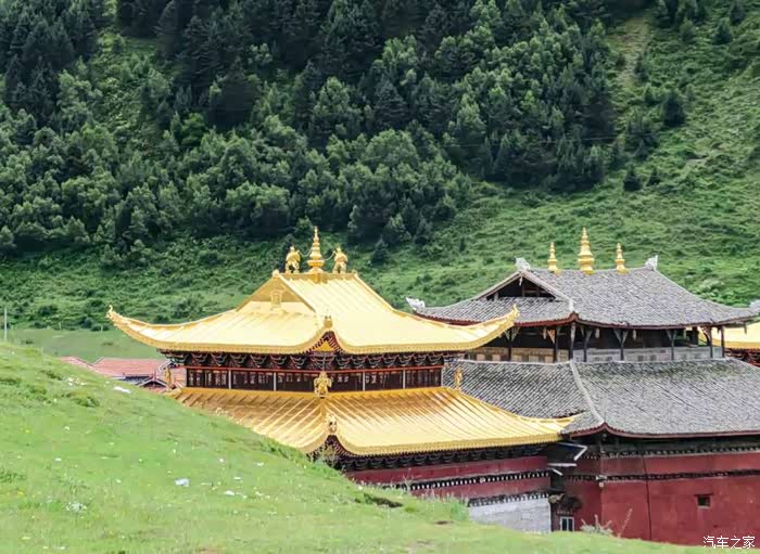 广袤的绿色草原和金碧辉煌的塔公寺相衬托,展示了一幅秀丽的高原风光。