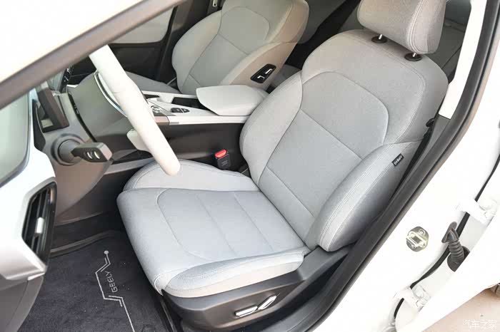在座椅的用料方面我觉得是几何A的一个亮点,采用了一种环保材质,并非皮质,更多的是一种高级布料的感觉。