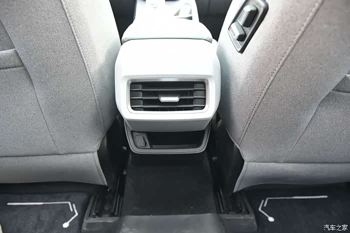 中央扶手箱后面提供了独立的空调出风口以及充电插口,这让坐在后排的乘客也有比较好的乘坐感受