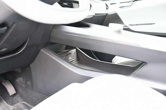 再往下是一个镂空的储物空间,并且提供了USB充电接口
