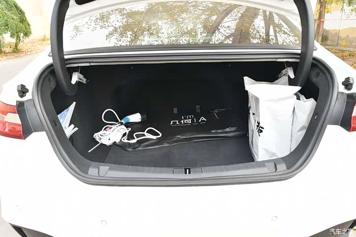 几何A的后备箱空间还是比较平整的,在容量方面也和一般的燃油车所差不多,通过实测可以放置20寸、24寸、28寸行李箱各一个,还可以放置书包等其他小物品