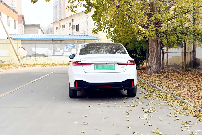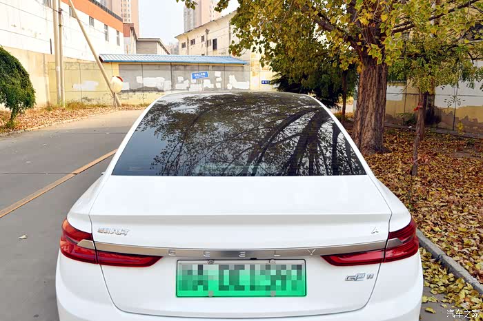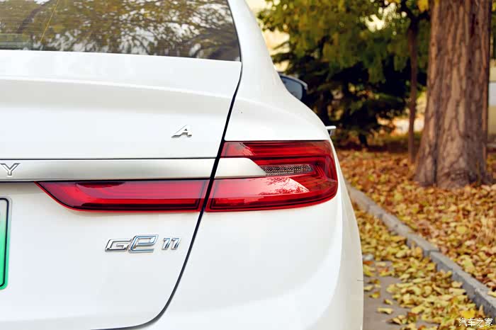 吉利家族化的贯穿式的镀铬饰条,将两个狭长尾灯连接起来,让尾灯看起来是一个整体