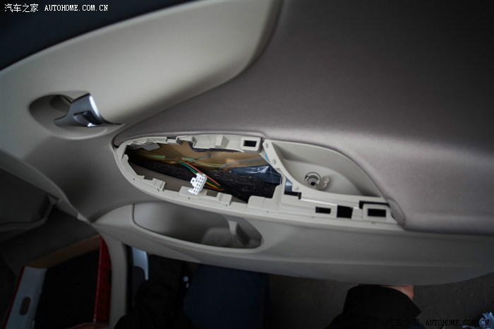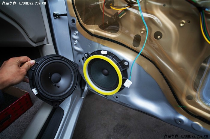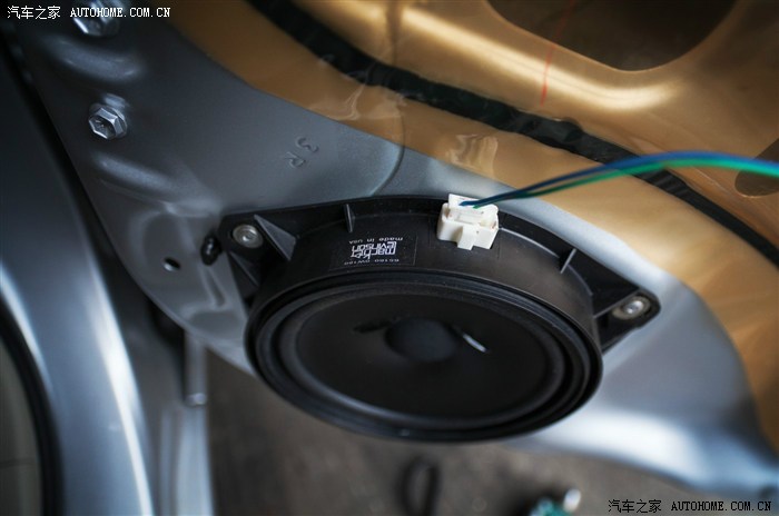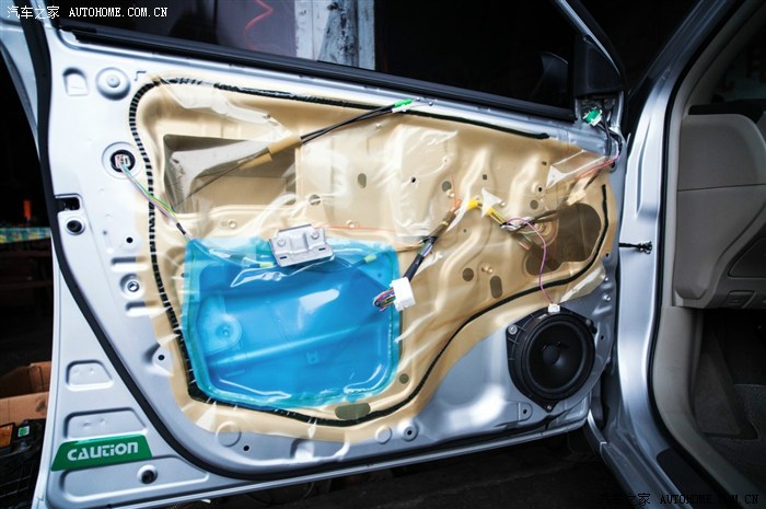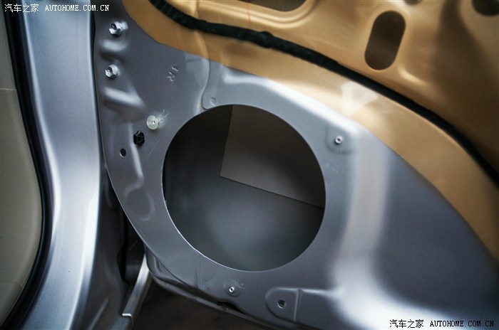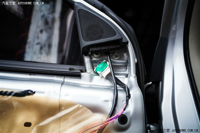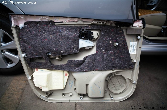 29、拆下原车喇叭,能看到车门内有简单的隔音。