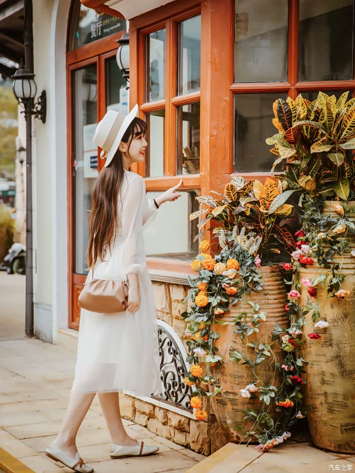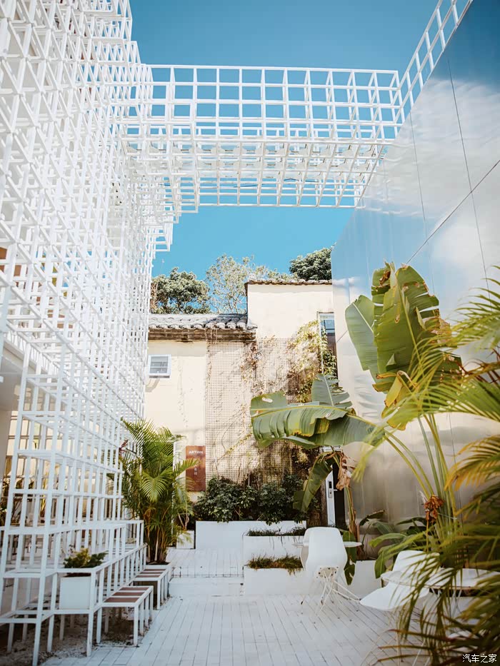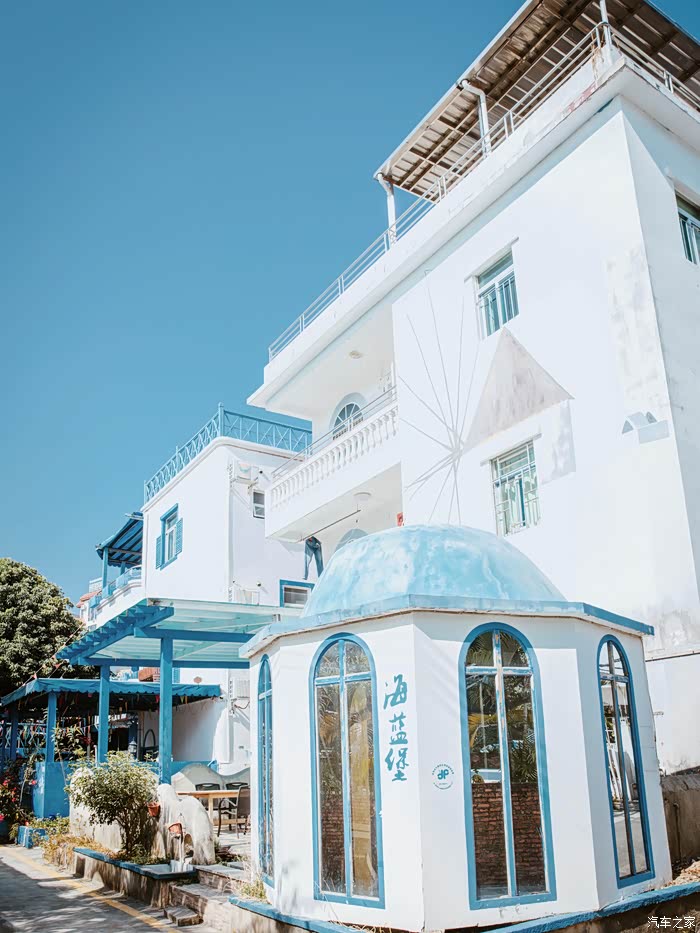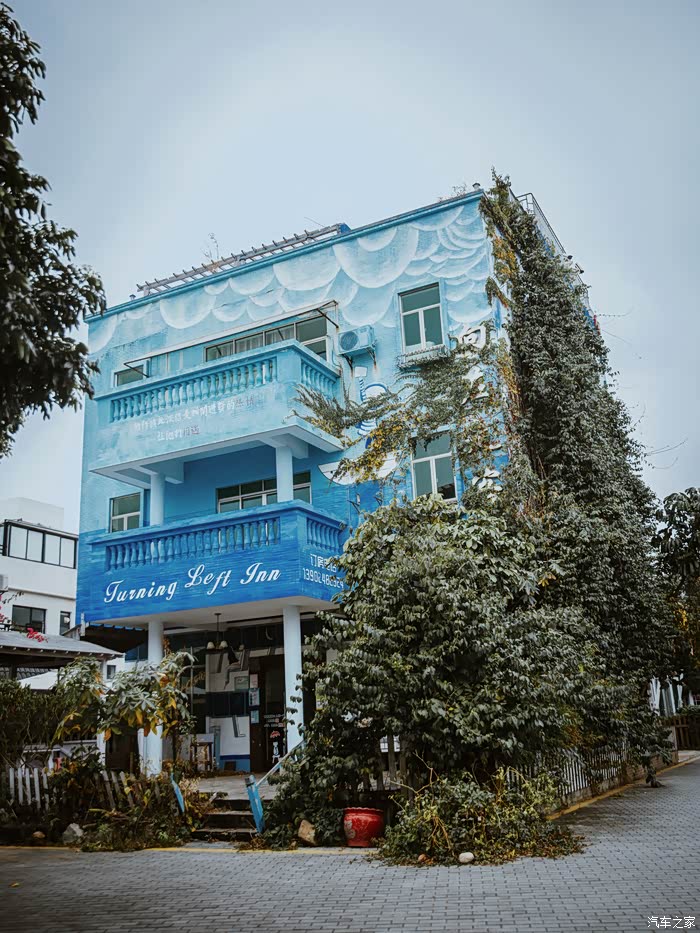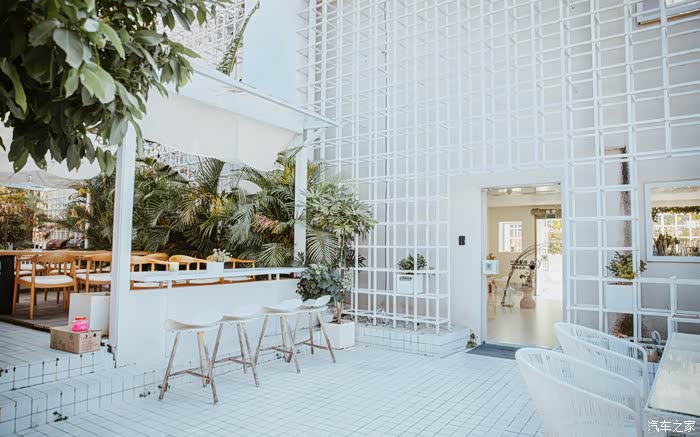在我们停车的附近正巧看到一处纯白色的民宿,简约的ins风格看起来满满的艺术风,交错的方格子在阳光的透视下格外清新明亮,在一楼随处走动怎么拍都像在东南亚的海岛,精致又浪漫~