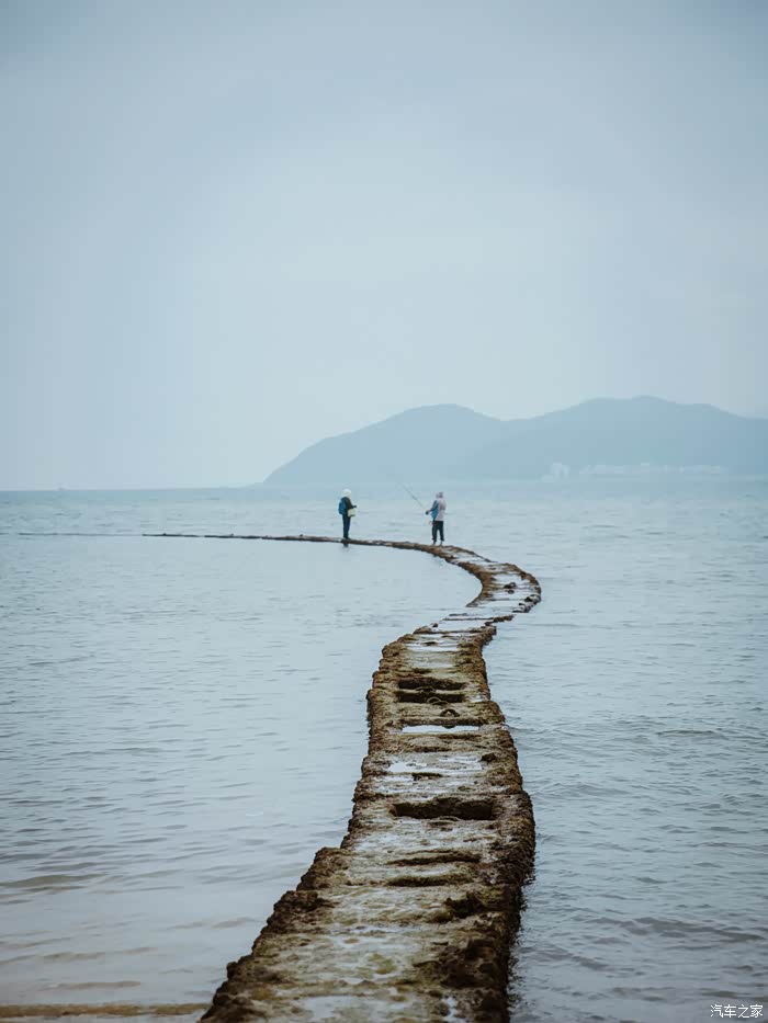 较场尾沙滩比较狭长,沙滩分为几个层次,接近海的地方沙子很粗很扎脚,上面一点的沙子很细很软。而继续往前走,会细软很多,还能看到一条神秘小径,一直通往海的深处,好些渔民在悠闲的钓着鱼。