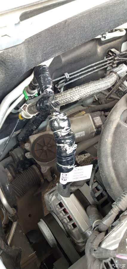 我今天用了三块橡胶套子把管子给包住,那种突突突的声音,不能说没有了,不过声音确实小了!有这个问题得车友可以试试,多套几个橡胶圈,用电工胶带缠绕!然后用铁丝固定