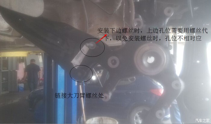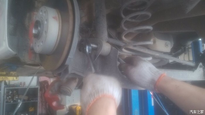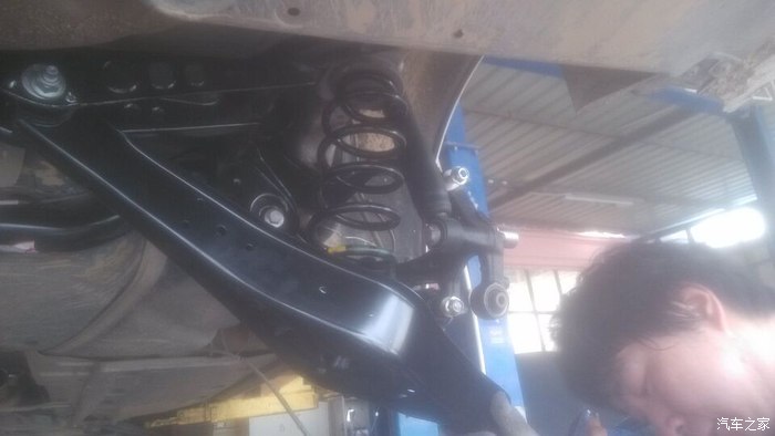 开始拆车 。 拆除轮胎,一共5可螺丝。取下螺丝盖,拆下螺丝就完事。 拆下原车减震器 拆除原车弹簧,用千斤顶,顶起后,到一定位置以后取下弹簧即可。 来一张原车弹簧跟,新弹簧的对比吧。 拆除轴承螺丝,取下螺丝盖,就会露出螺丝最后拆除。 拆下ABS线,找到ABS所在位置,直接拔下。 ABS线 插头需要拆下 最后安装的羊角预留位置。 把刹车油管直接在卡子内取出就可以 拆除后桥连接固定螺丝 下面给大家看一下 衬板裂痕位置,手机拍的不是很清楚,但是应该可以看出来的。速腾车友们大家最好,有时间仔细检查一下吧,毕竟关系到安全问题。 接下来需要拆除排气了,也就是几颗螺丝的事情,很简单的 拆除螺丝然后把卡排气位置的皮卡垫取下。 关于更换悬挂的所需拆下的零件,已经完全拆除,接下的就是给大家看一下,关于组装悬挂已经安装悬挂的过程。起初对于安装师傅的,安装技术还不是很相信。经过实际操练,确实不错,不愧安装上千套悬挂了。从安装熟练程度安装顺序看来安装师傅的安装技术果然了得。值得一赞哦 更换减震套,内侧一个螺丝,用扳手拆下,更换新的减震。 接下来就开始安装后桥了,也是安装在相应位置。我看了一下原车都是有预留安装位置的,安装螺丝位置完全是相对的。这样看来,大众是想到这一点了吧,迟早是要更换独立悬挂特意给预留的吧 现在要安装羊角了, 羊角主要是连接各个零部件。所需要连接的是有,小直臂 ,大刀臂 ,弯臂。下面图片解说。 接下来安装弹簧,安装弹簧需要把弹簧上下如槽对好位置,然后用千斤顶,顶起弹簧支架,跟羊角连接。 安装平衡杆,中掉头,固定刹车油管。 随后把电瓶线安装好 这样算是独立悬挂安装完毕了,然后做下四轮定位就大功告成了。 我跑了两圈,给大家讲一下感受吧。四轮定位做好以后方向是没有任何偏差的,这个大家都是知道的。关于独立悬挂的感受,效果真的很是明显,转弯感觉跟非独立悬挂开着完全两种概念,转弯时速提高些,也感觉是很平稳的。安装处没有什么很烂的坑洼地带,我跑了几圈减速带测试了一下,没有原来非独立悬挂那种感觉生硬的动态了,舒适性提升了不少。真心感觉消费这几千元是非常值得的。 好了就到这里吧,中途有什么新发现,我会及时给大家更新的,最后我陈述一下结尾。 感谢365天坚守在贴吧一线的工作者及各位车友伙伴。大家能在百忙之中观看我的作业,本人真是感到有面。这个帖子是想跟各位伙伴多多交流,图片是手机所拍,可能有些图片大家看的不是很清楚,有任何疑问随时问我,我给大家一一解答。 希望大家雁过留声,人过留名哈,多多支持哦,谢谢了!