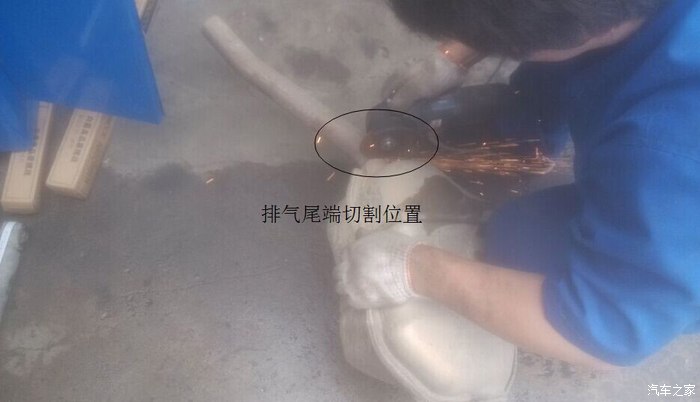 切割安装排气过程图。 有一点需要大家注意一下的,焊接排气需要接原车地线的。所以一定要把原车电瓶线拆掉的,要不会影响电瓶寿命的,也有可能使电瓶损坏。这一点要切记。