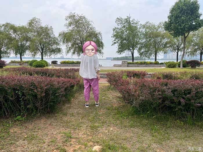 这媳妇是看累了打算去湖边望望远处放松一下眼睛,窝在家里也只能看看高楼大厦了这里有水有树多惬意呀~