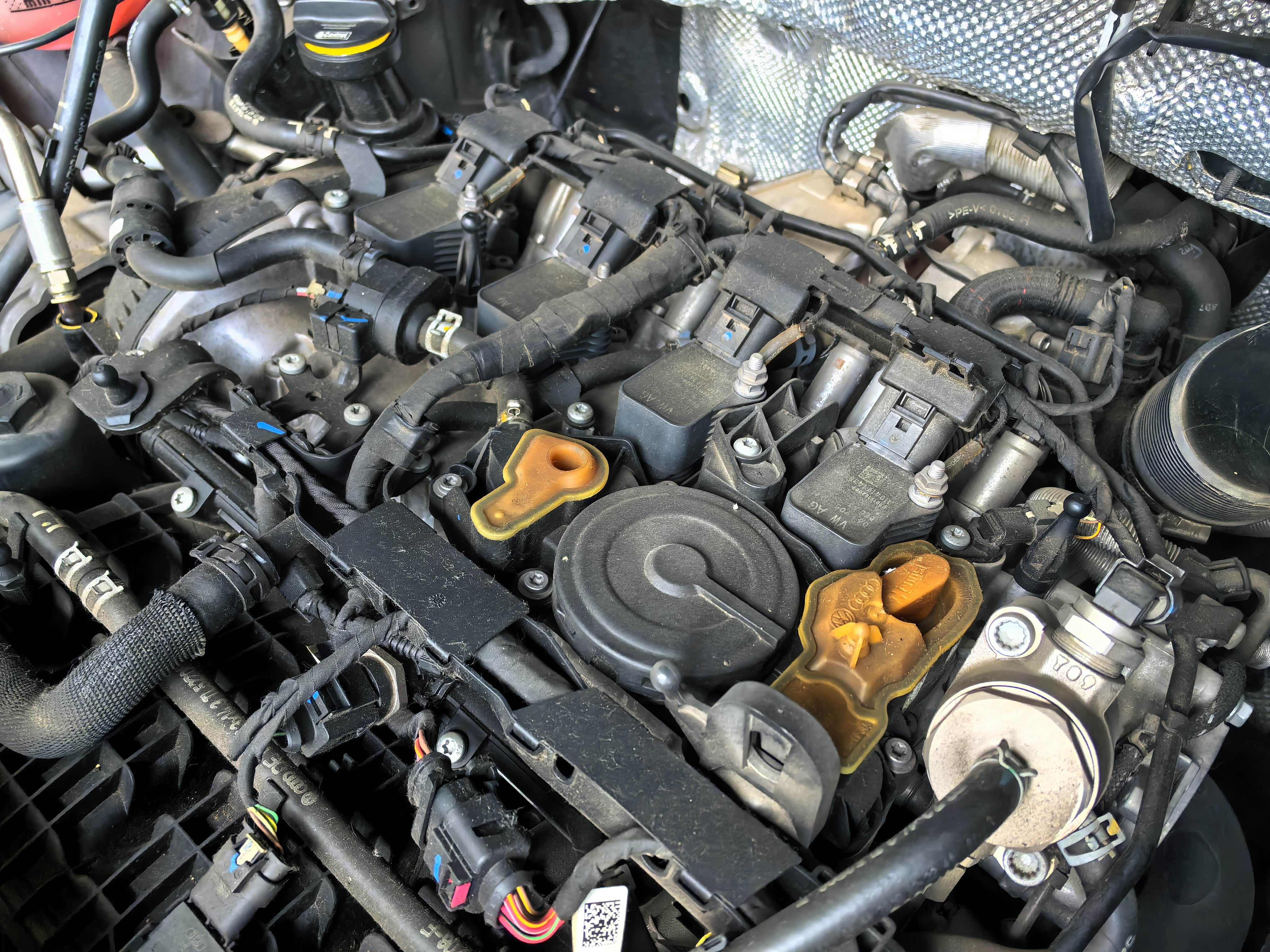 拿掉发动机防尘盖,里面干干净净,没有发现渗油