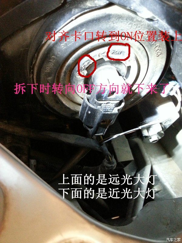 这是远光的灯,很简单一扭就下来了,自己在网上买个好的,就可以换好了。