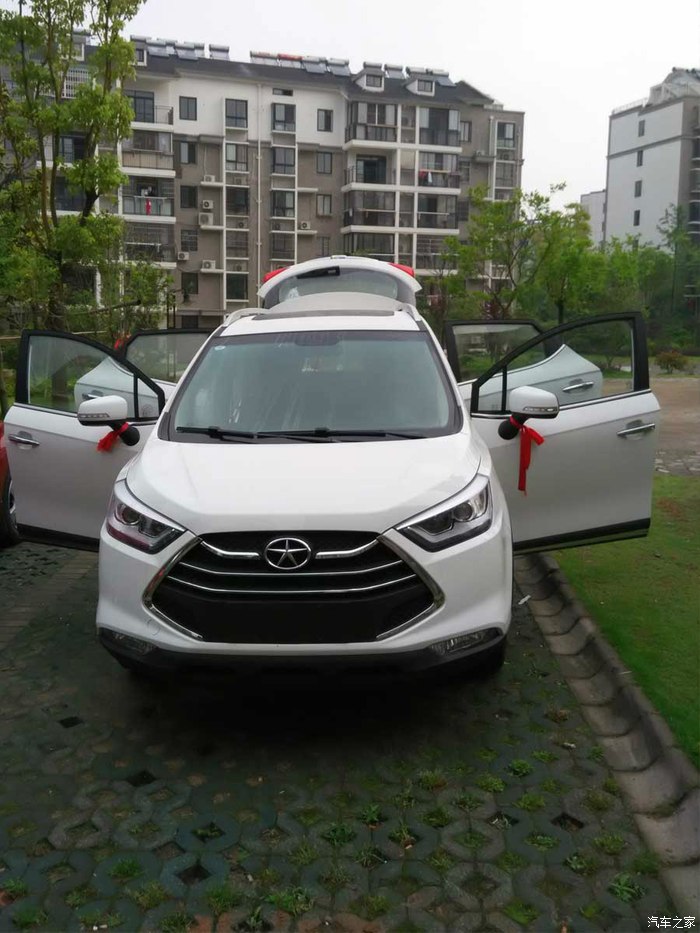 1、提车与油耗。女儿上学后,和老婆就有了买车的想法,家庭用车讲究实在,做为男人又有一种SUV情结,所以就一直逛论坛看车展,瑞虎、风神、景逸、长安等等,一直也没有确定哪款!2015年5月8日,和老婆在汽车之家的一个车展上第一次看到小三,就一下子喜欢上了!与销售的小韩了解下情况,就果断的交了订金,白色自动豪华智能,加天窗!等到了5.18号提车上牌!在这里感谢池州汽车之家的销售小韩MM的热情服务!新车图也来上几张,展示小三的风采: