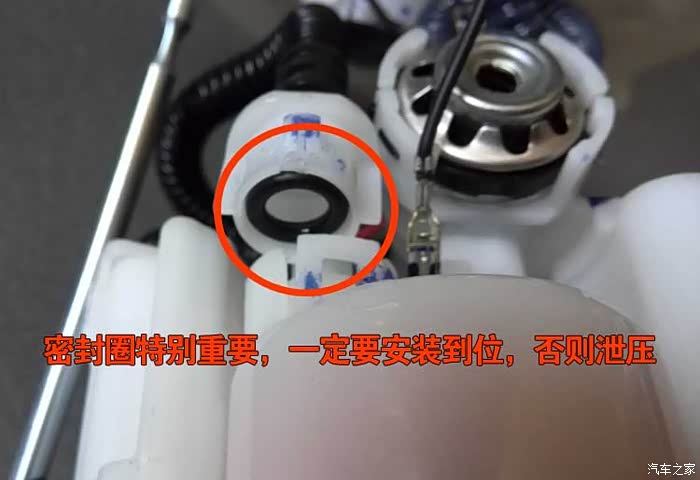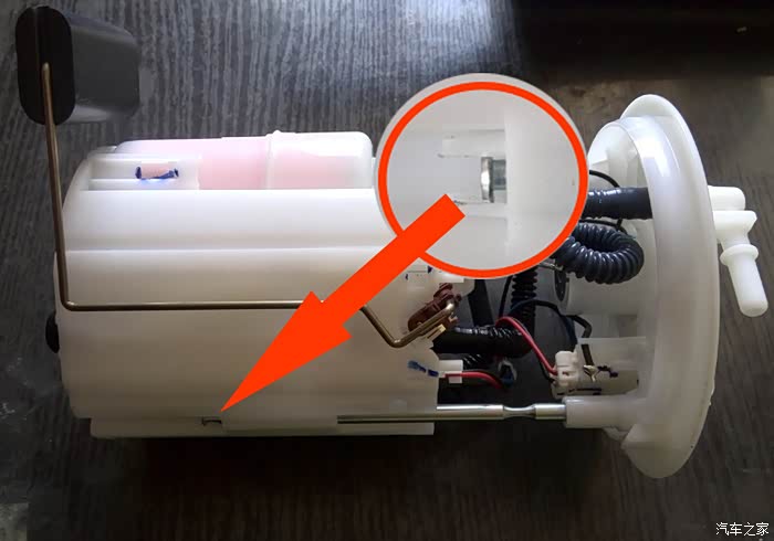 3.更换汽油滤芯(为了让大家看清楚,选用新的原装汽油泵总成拆解)