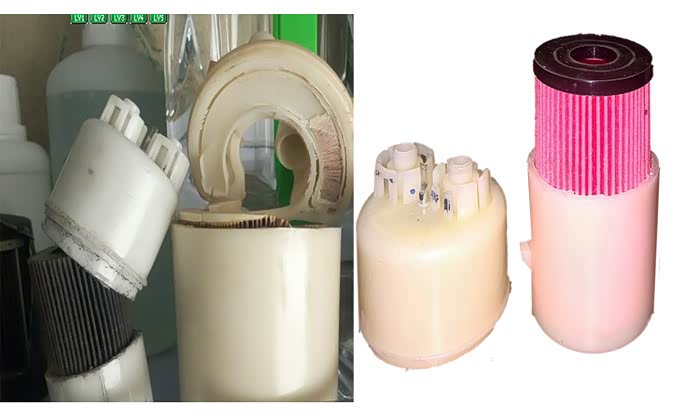 汽油滤芯解剖图:左边是旧的,右边是新的