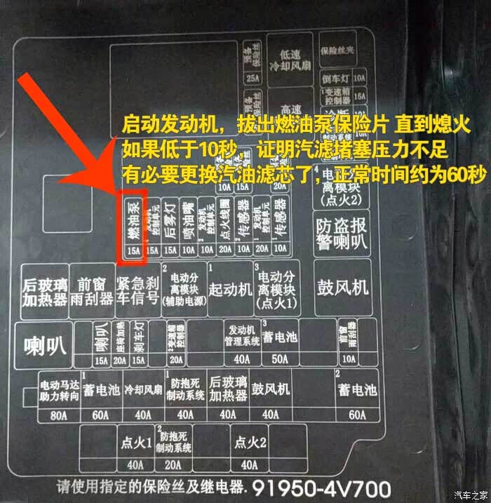 按图索骥找到燃油泵保险,拔掉(安装完毕,一定要装回去)