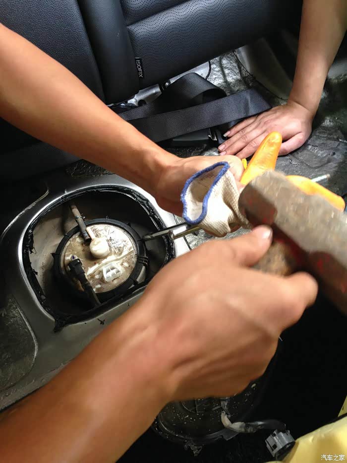 拆开后排座椅,落出汽油泵盖子