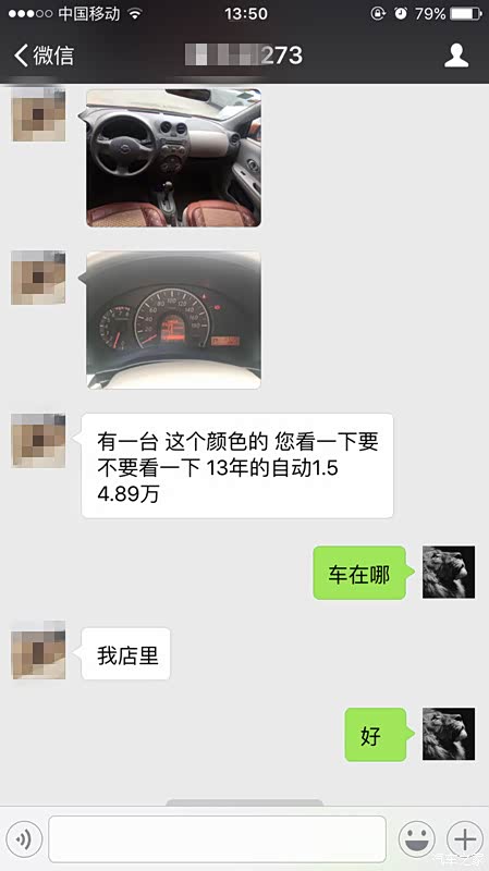 话说要买小玛,本人也是沉浸于各个二手车网站,短短数月间,阅车无数!这里就不一一点名网址了.二手车网有的小玛福建地区的很多都是发了重复的.看来小玛确实是比较罕有!最早间看过一台09年3月产 10年11月上牌的.1.5L易智版.银色.里程7万多.可惜车况太糟糕.话说09年3月产 10年11月才上牌.这也算是库存车了吧.接下来的日子也是看了好几台基本都是10年 11年的.价格均在4.5 4.9左右! 多半都是MT变速箱的居多.本人已有一辆MT开了七八年..开烦了手档!至此决定一定要自动档!数月间也接触了不少车商.某一天早上微信接到车商信息,如图