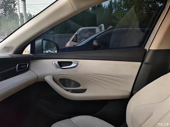 外观的车头我觉得还可以,车屁股呢有点太老气了,不咋好看。是这个刀锋银车漆还不错,挺亮的,又是金属漆。内饰这个米白色内饰看着确实不错。