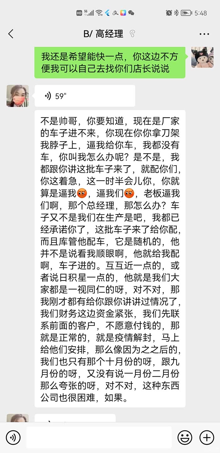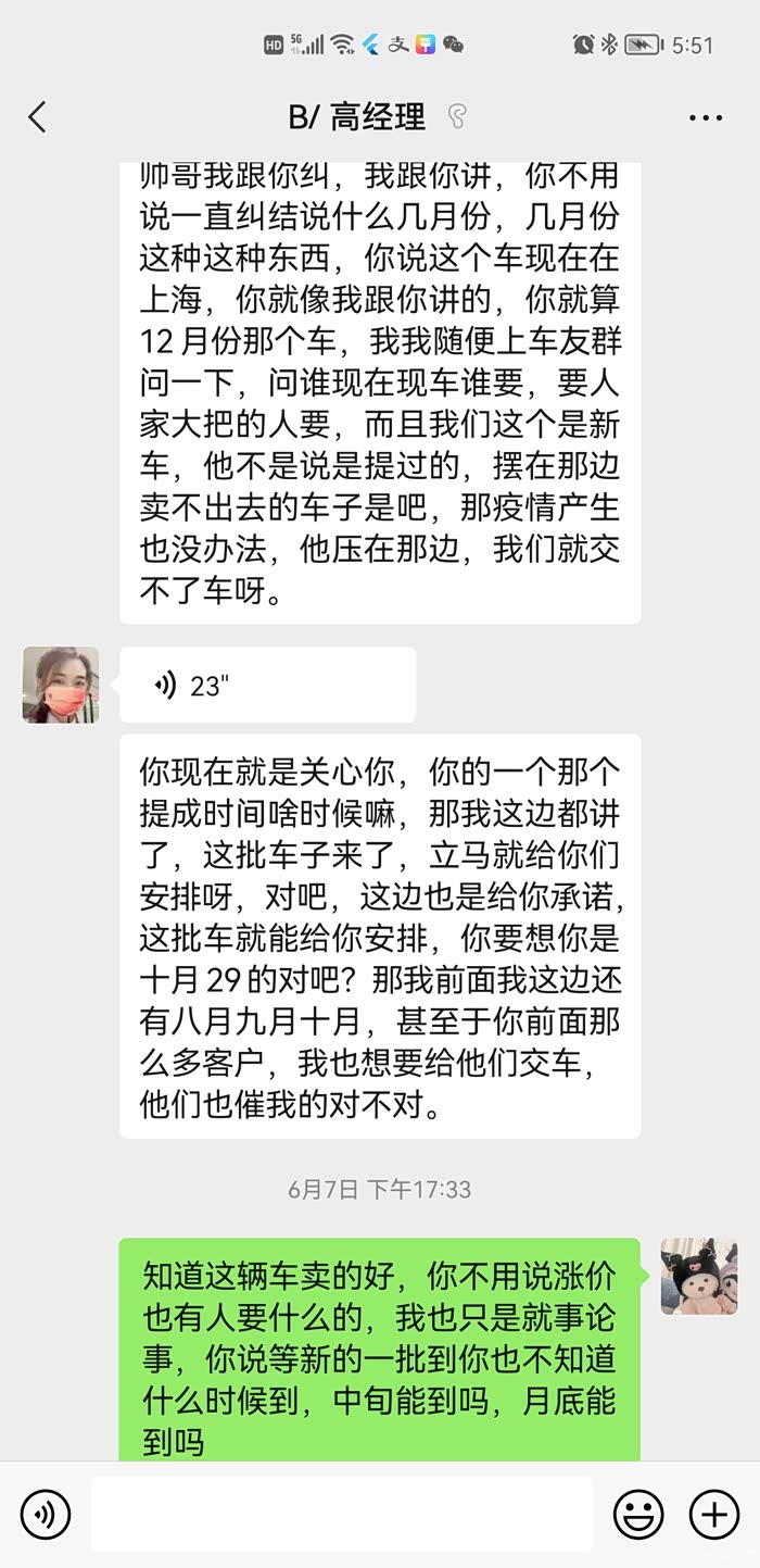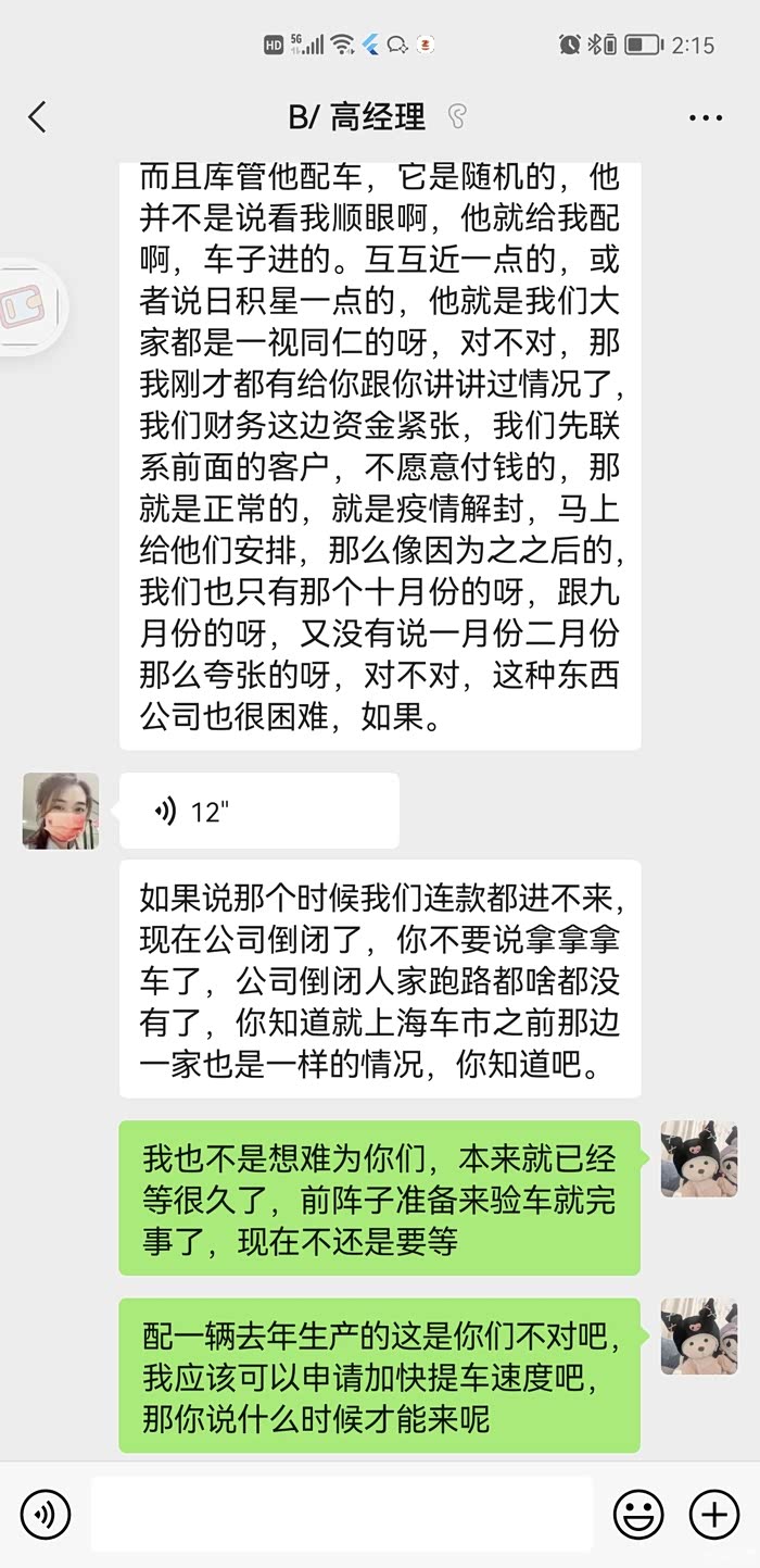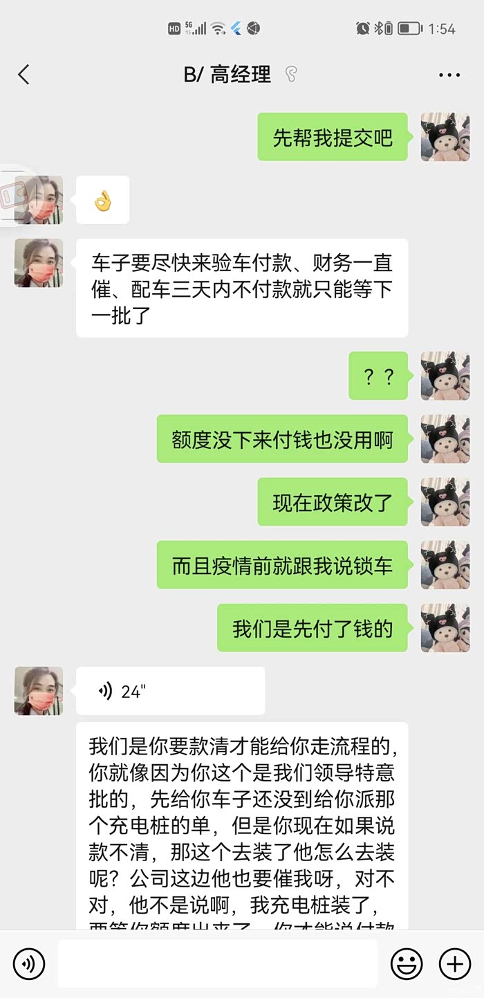 2021.10.29日在上海华裕启迪比亚迪店订车至今还未提车,由于你们公司资金紧张,我疫情期间提前付给你们钱了,结果给我安排了一辆超过6月以上库存车,我不要,销售还振振有辞说别人加钱都会要的,你不要的话就再等新车,服务态度恶劣,多次投诉厂家也没有反馈。新车到了之后还有后续:上海新能源政策改了之后需要先审核出额度再付钱,销售蛮不讲理问我先要钱,不把客户放眼里甚至对自己领导讲的话不当回事?希望贵店好好管理一下员工吧?