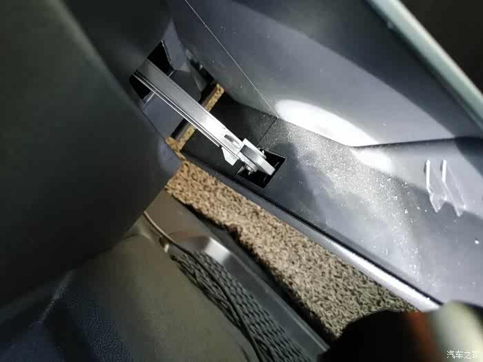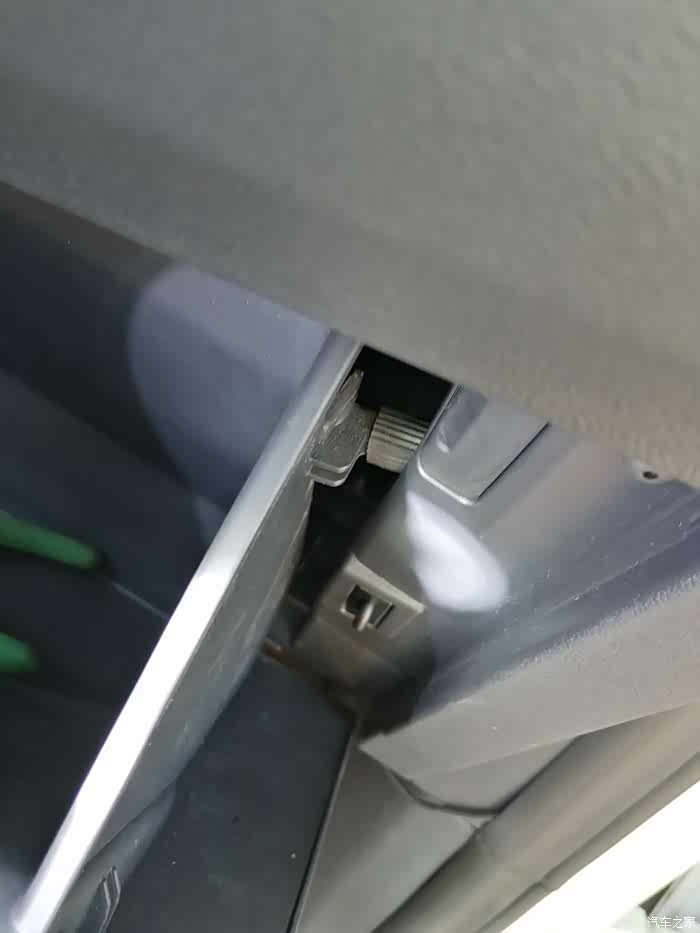 这就是那个链接阻尼杆和手套箱的螺丝,安装的时候直接对准,往里面一插,插到位就好了,这里说一下,阻尼杆和手套箱脱开后,你开关手套箱它会缩进去,不要担心,用手捏住往外一拉就出来了。