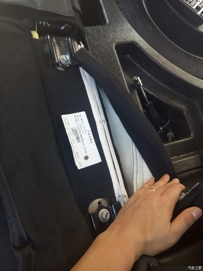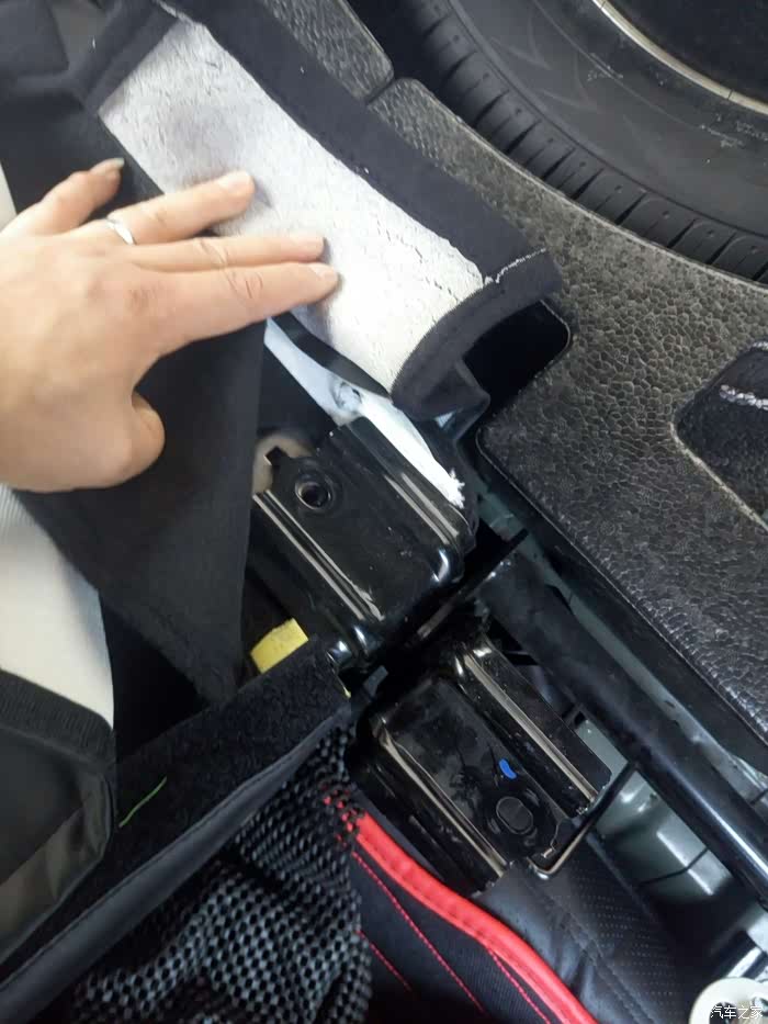 :1、后排先放到,然后拆开座套绒布,就能看到两颗14号套筒拆的螺丝,拆!放好,刚好备胎泡沫有放的地方!两边都是一样的拆