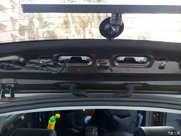 1,拆后备箱打开后上面的装饰,首先最中间那条,只是扣住的,用力扣就下来了,接着左右两边,也是扣就拆下来了,拆完就上螺丝刀,左右两边各有一颗螺丝,拆了放好,在锁扣两边还有两颗螺丝,就是两个凹进去的地方,再拆了这两个螺丝就可以把整块装饰板扣下来了(如果担心卡扣坏了,提前先买点)