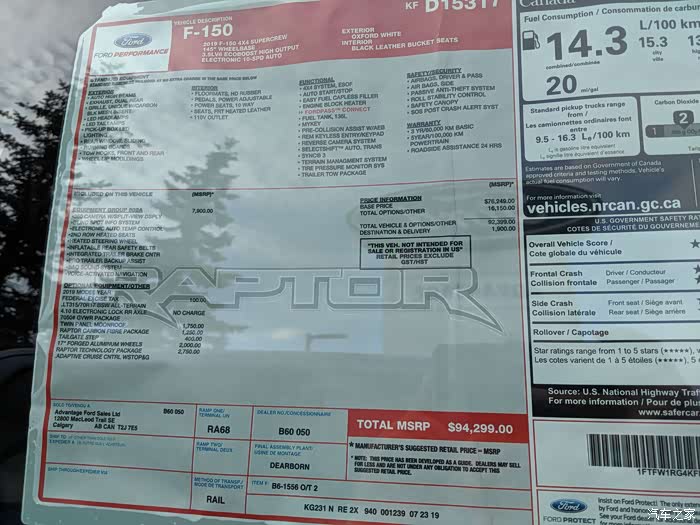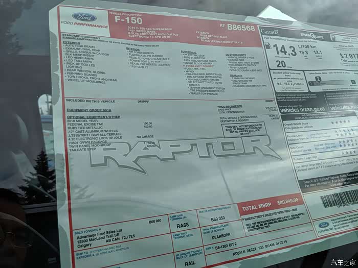 我能找到的最便宜的一辆乞丐版猛禽,还是比Sierra Denali,RAM1500限量版,贵1万多加币